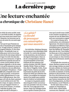On se dit que c’est le moment de lire ou de relire Cioran, à l’occasion de ce centenaire de sa naissance ; relire, dans le sens de revoir son jugement, reprendre les choses au début, à la lumière de la lecture que nous en propose Stéphane Barsacq. Et c’est peut-être cela, la vraie réussite de cet ouvrage : nous inviter à une redécouverte qui est aussi une découverte de soi.
